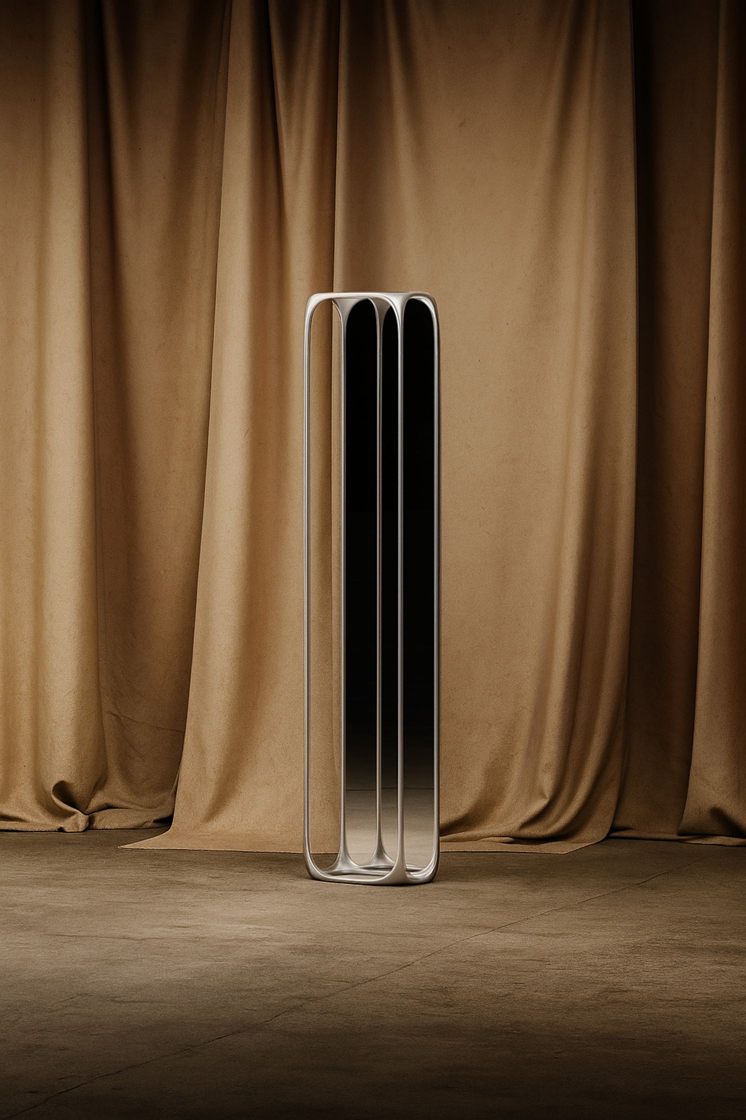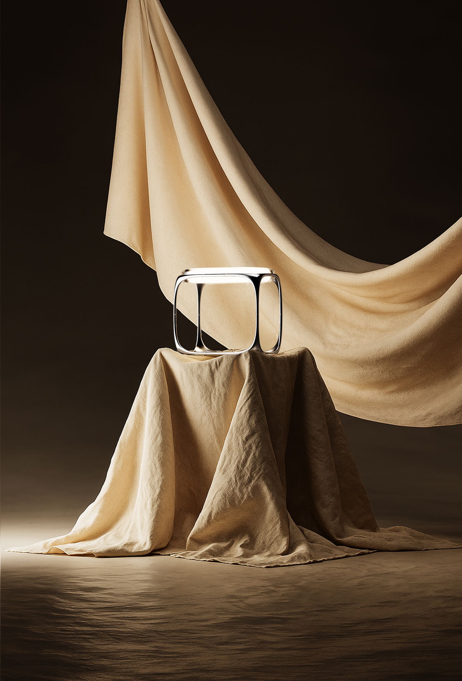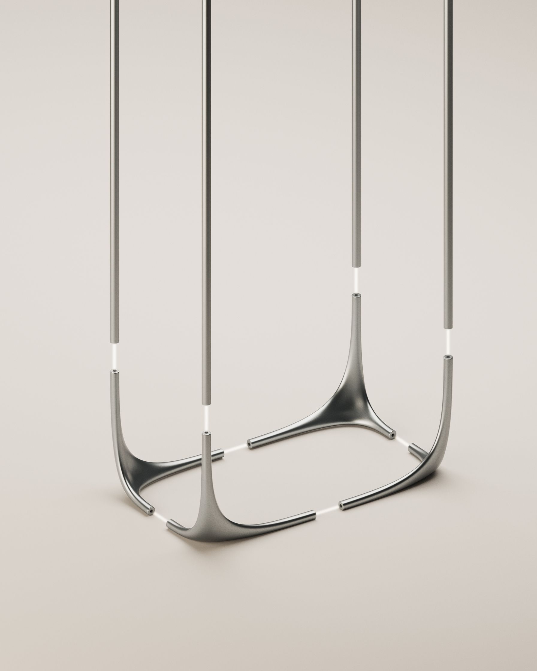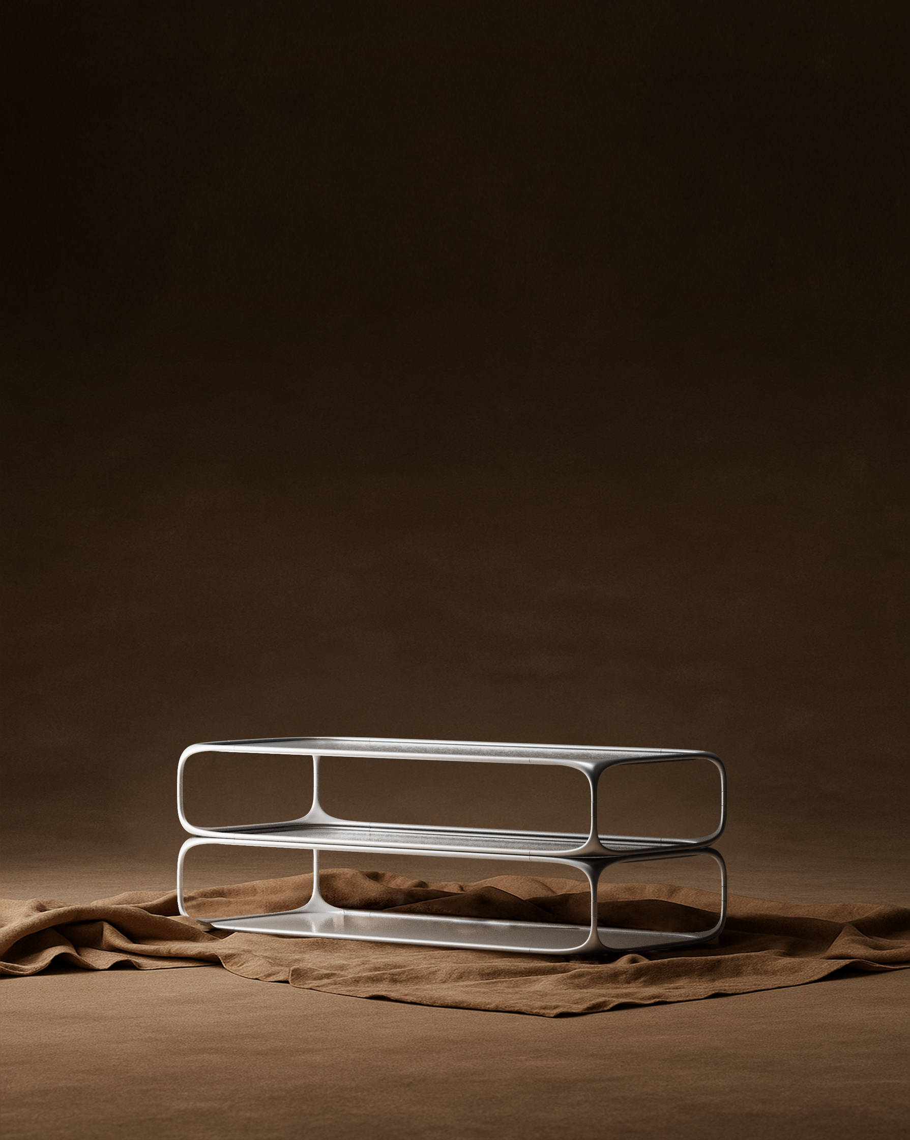 This project is built around a modular metal system that becomes the foundation for different explorations within the home environment. Instead of designing each object independently, everything starts from the same structural language: a sequence of curved metal modules that define proportions, rhythm, and a soft yet precise geometry.